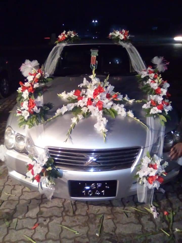 Make a statement of unparalleled opulence on your wedding day with our Fresh Red Rose and White Gladiolus Multi-Layered Star Car Decor. This high-impact design is for the couple who wants a breathtaking, high-volume floral display that transforms their vehicle into a moving garden. The centerpiece of this arrangement is a spectacular, multi-layered “starburst” positioned on the hood, meticulously crafted using the architectural height of white gladiolus and the deep, romantic texture of premium red roses.