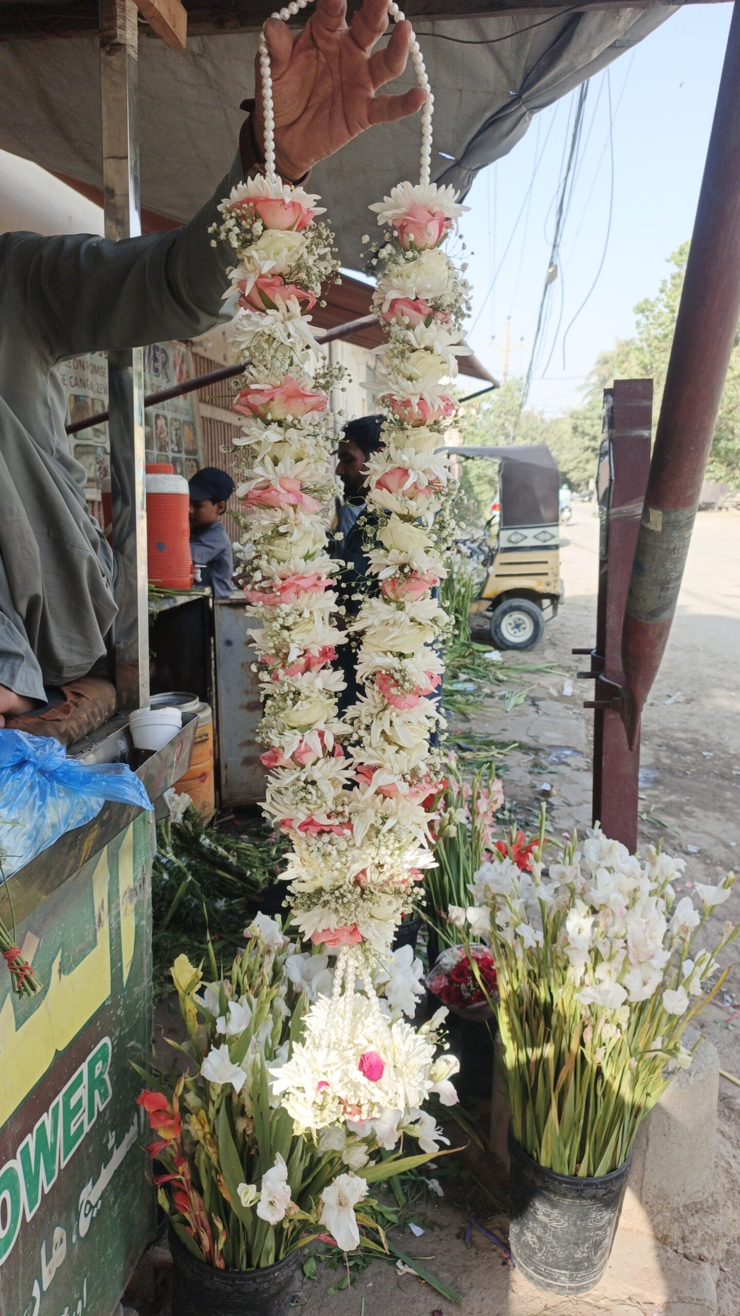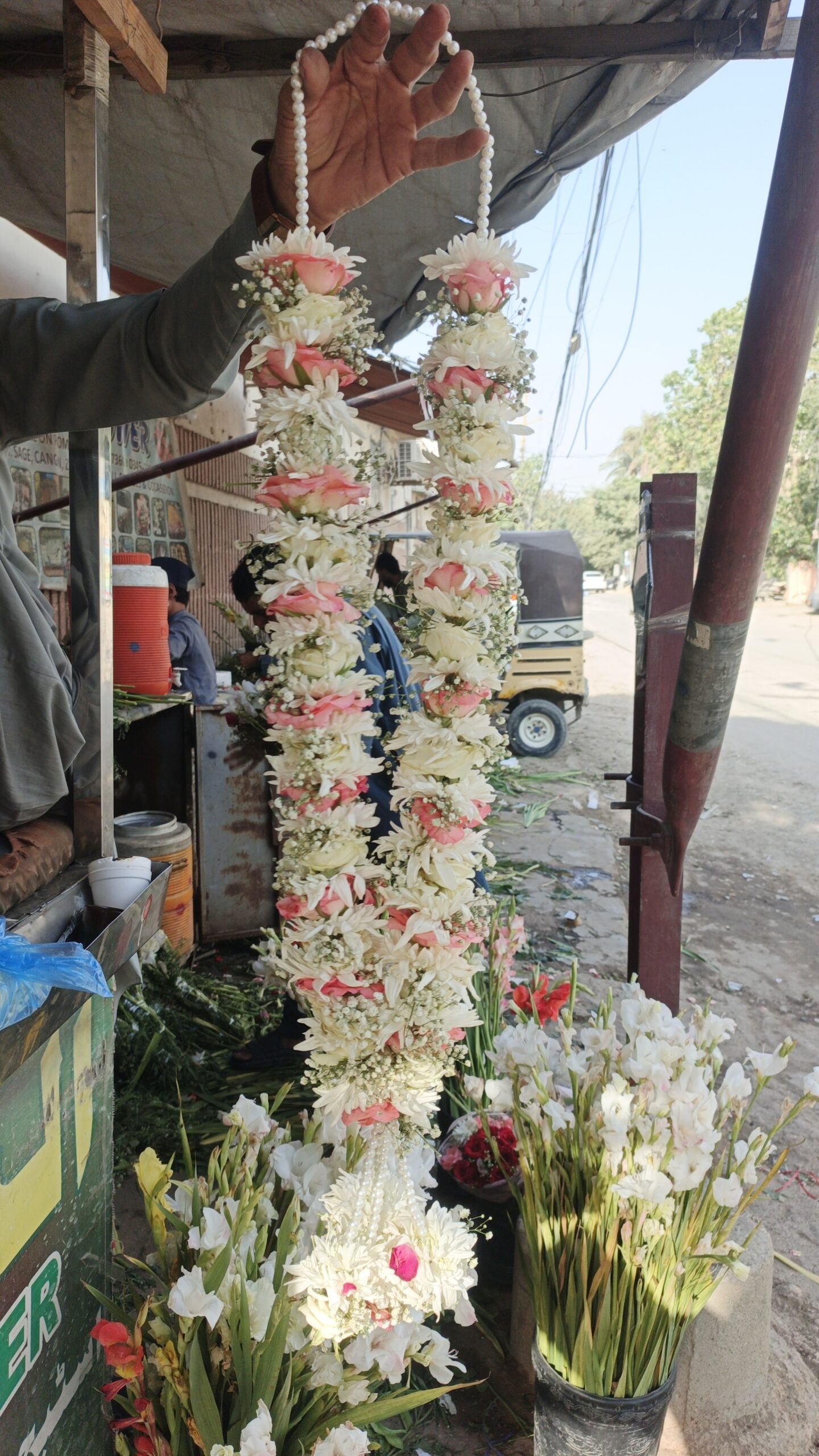 Our Imperial Peach Rose & White Chrysanthemum Tiered Handcrafted Haar is a stunning example of traditional floral symmetry. This design is built on a high-density foundation of pure white chrysanthemums, meticulously hand-packed to create a thick, ruffled “pillar” effect that provides a substantial and prestigious presence.