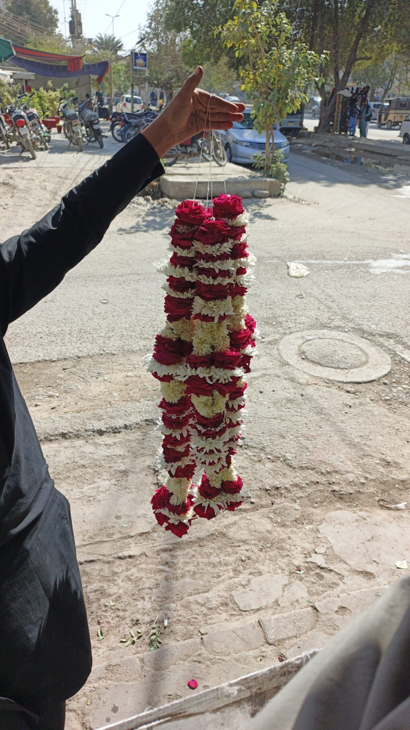 The dual-toned pattern is repeated meticulously throughout the length of the garland to ensure a symmetrical and balanced aesthetic from every angle. Crafted on a sturdy yet flexible core, this Haar drapes majestically over the shoulders, making it an ideal choice for grooms, VIP guests, or prestigious welcoming ceremonies. The combination of the fresh, earthy scent of chrysanthemums with the soft, romantic aroma of red roses ensures a memorable sensory experience for the wearer.