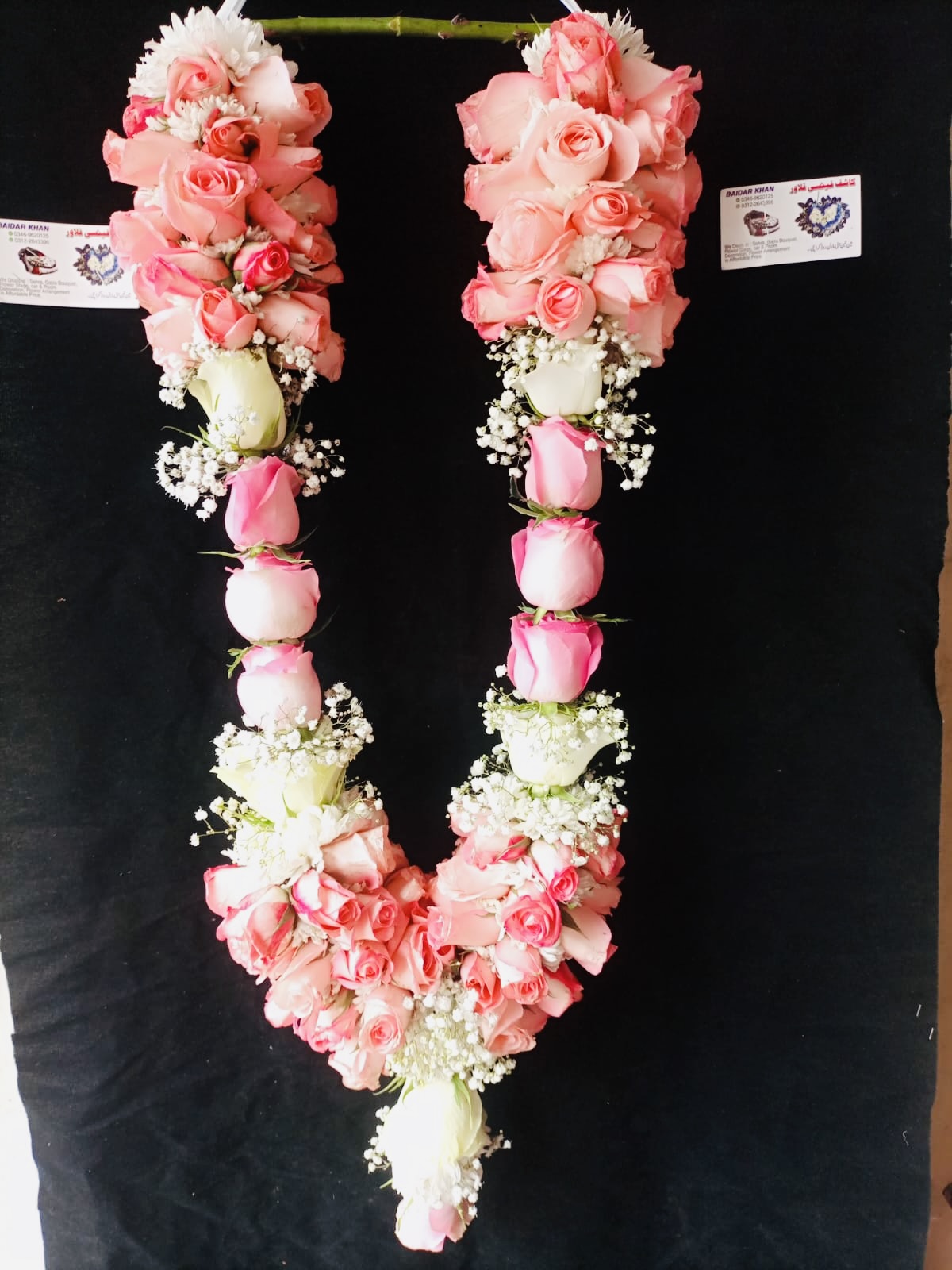 PINK AND WHITE ROSES HAAR [ GARLAND] WITH BABY BREATH