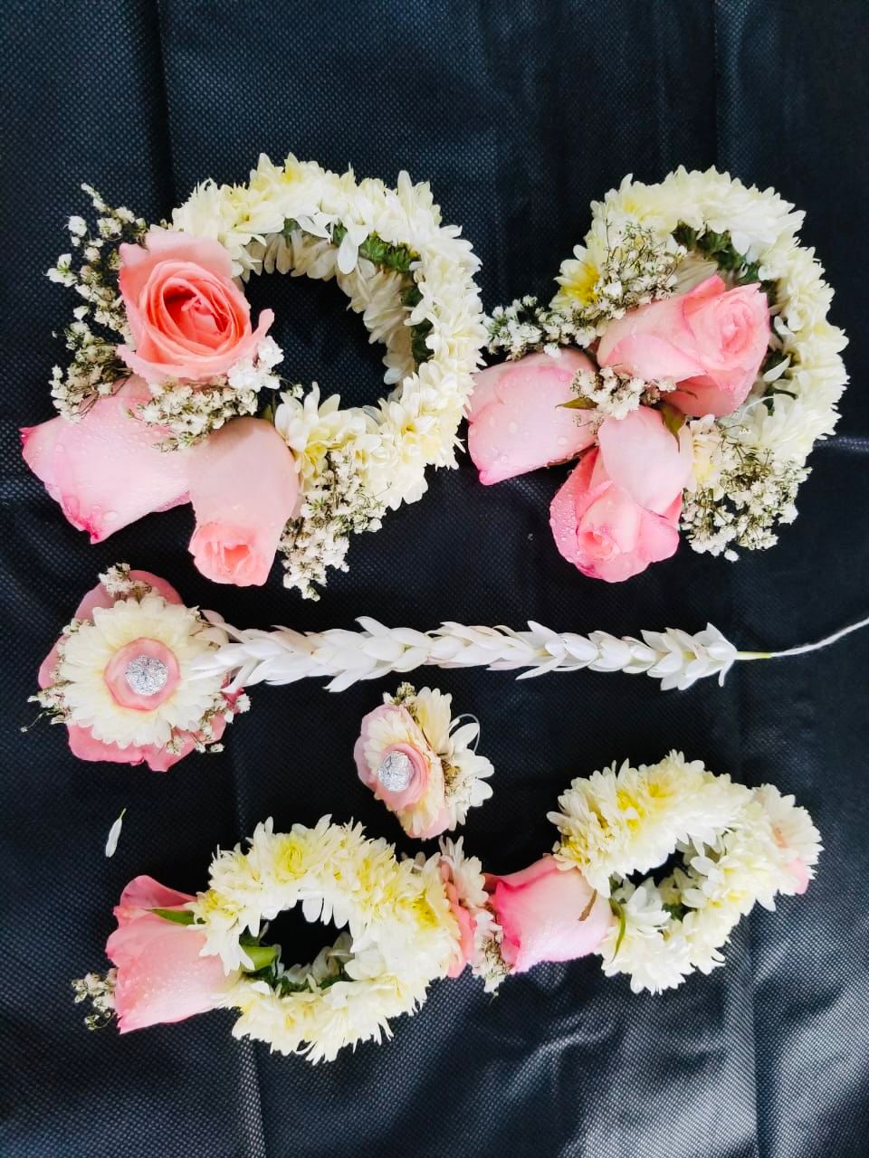 Our Pink Rose and Baby Breath Complete Bridal Set is a beautifully handcrafted floral jewelry set designed to give brides a soft, romantic, and elegant look on their special day. This stunning set features delicate pink roses paired with graceful baby breath flowers, creating a dreamy floral combination that perfectly complements bridal and festive outfits. The gentle pink roses symbolize love, happiness, and admiration, while the tiny white baby breath flowers add a soft, airy charm that enhances the overall elegance of the design.