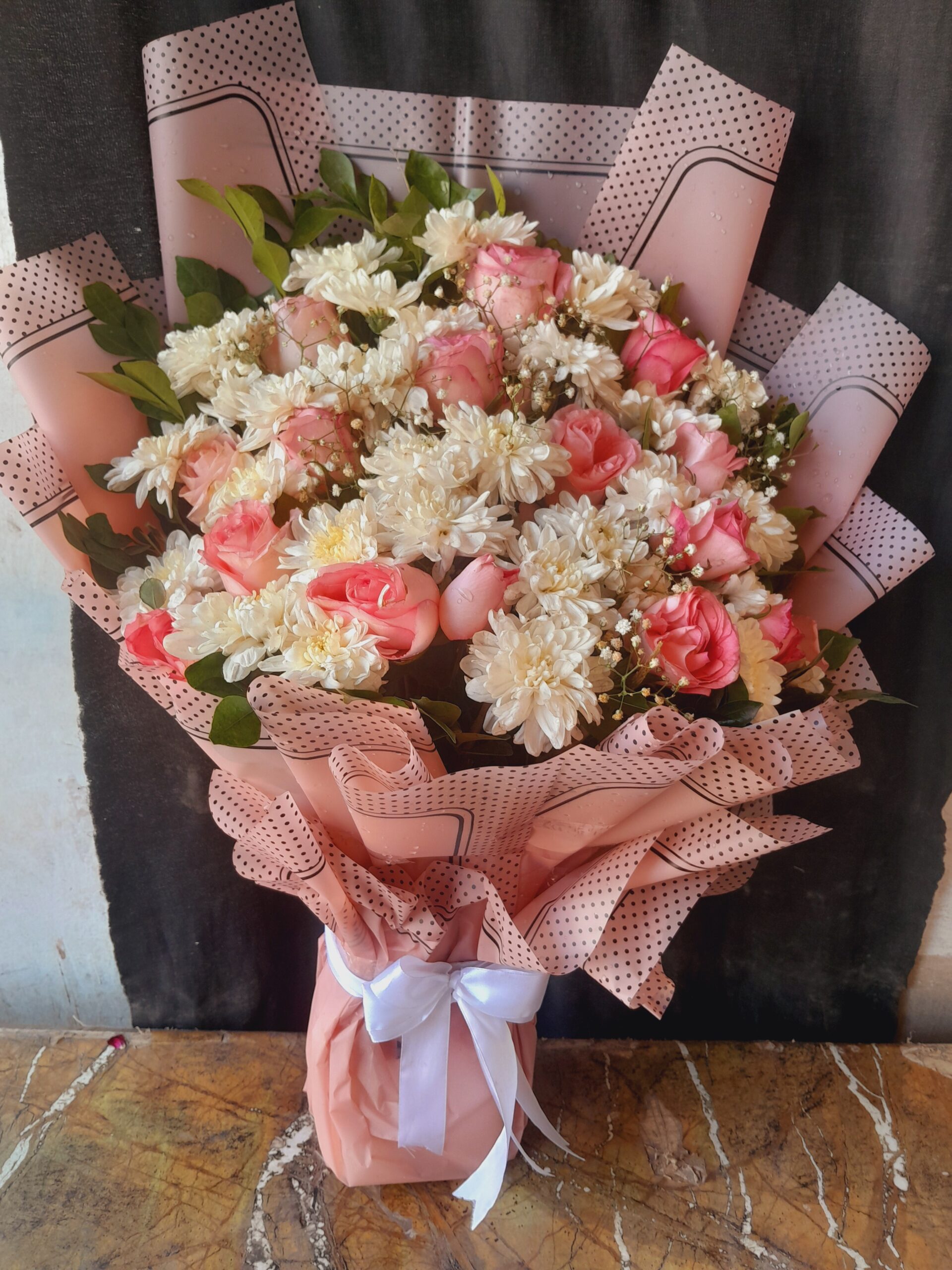 • Fresh Pink & White Roses – Carefully selected roses with vibrant colors and delicate petals.