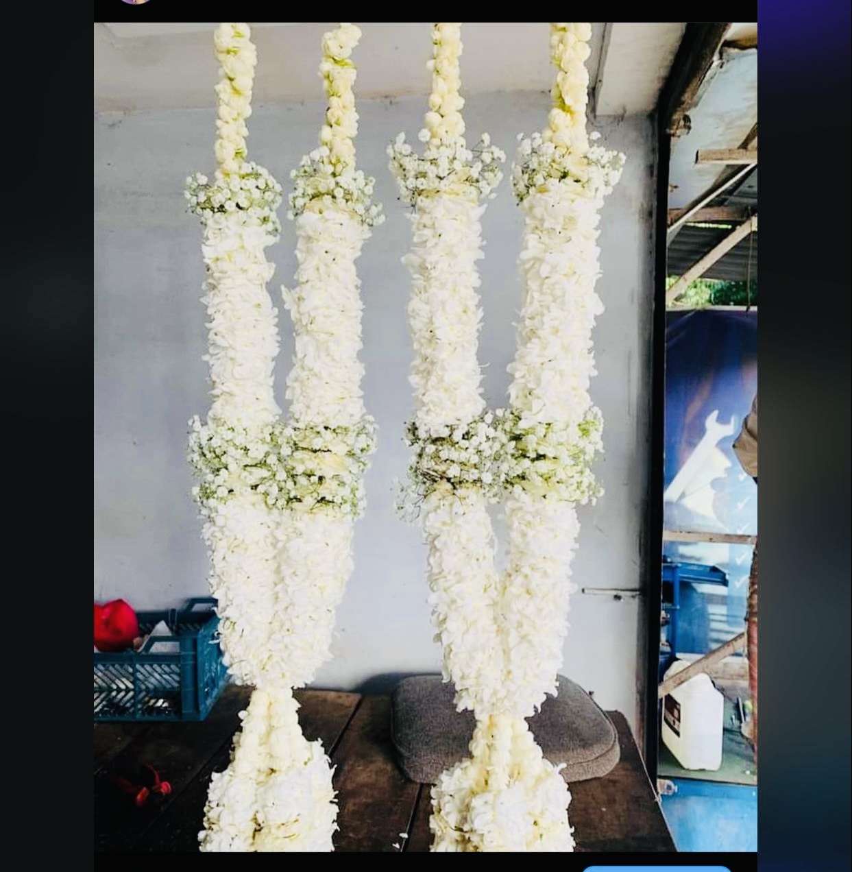 This combination enhances the natural beauty of the garland, giving it a fuller and more textured appearance while maintaining a soft, pure white floral look. The sweet fragrance of motiyan blended with the delicate charm of baby’s breath makes this garland perfect for weddings, engagement ceremonies, religious events, and festive celebrations. Its refined and romantic style adds a timeless floral elegance to any occasion.