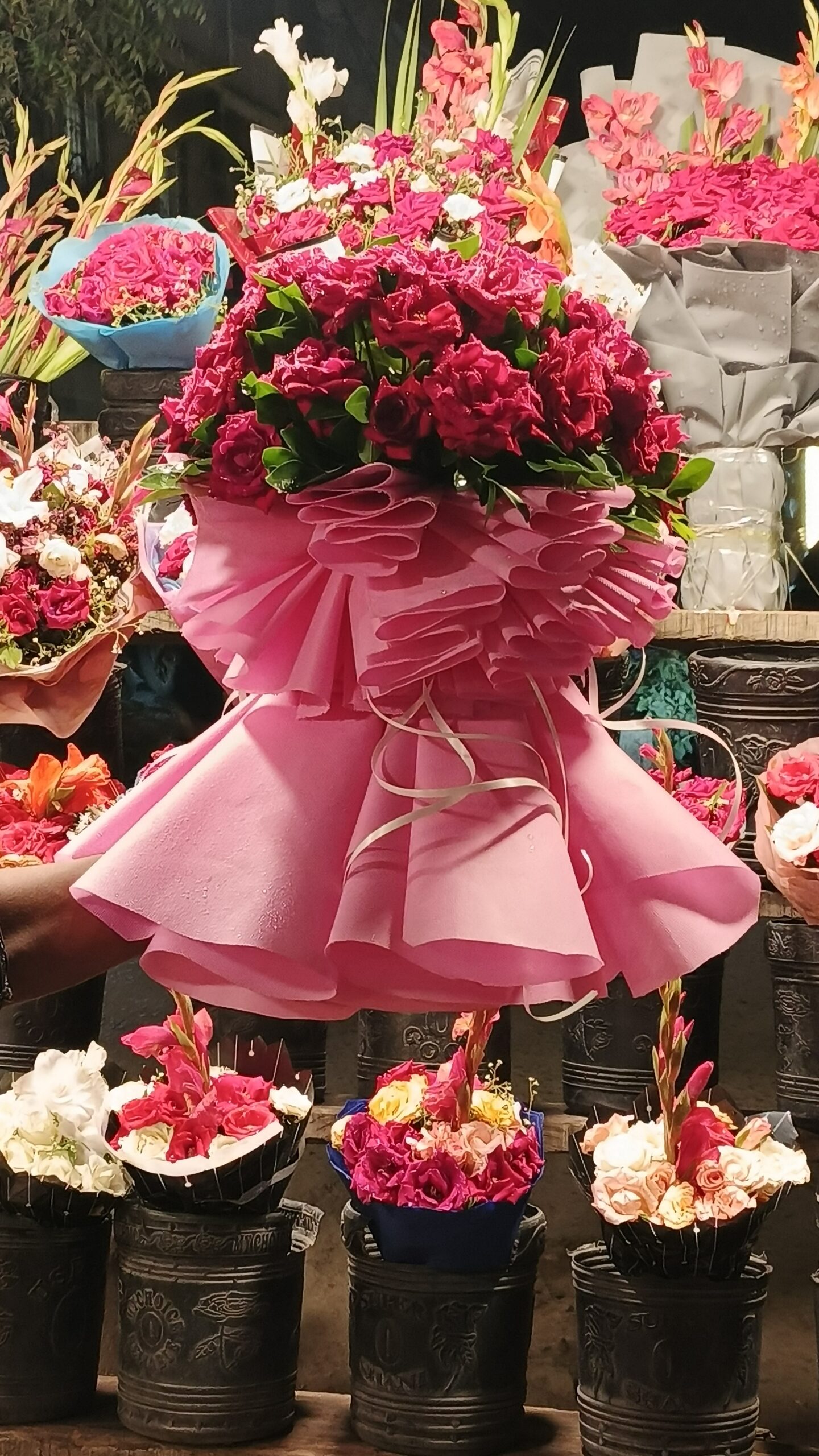 This extraordinary bouquet is crafted for moments that deserve nothing less than perfection — engagements, proposals, anniversaries, luxury gifting, weddings, grand celebrations, and unforgettable surprises. The contrast between deep crimson roses and delicate pink ruffles produces a visually stunning composition that feels romantic, dramatic, and undeniably elegant.