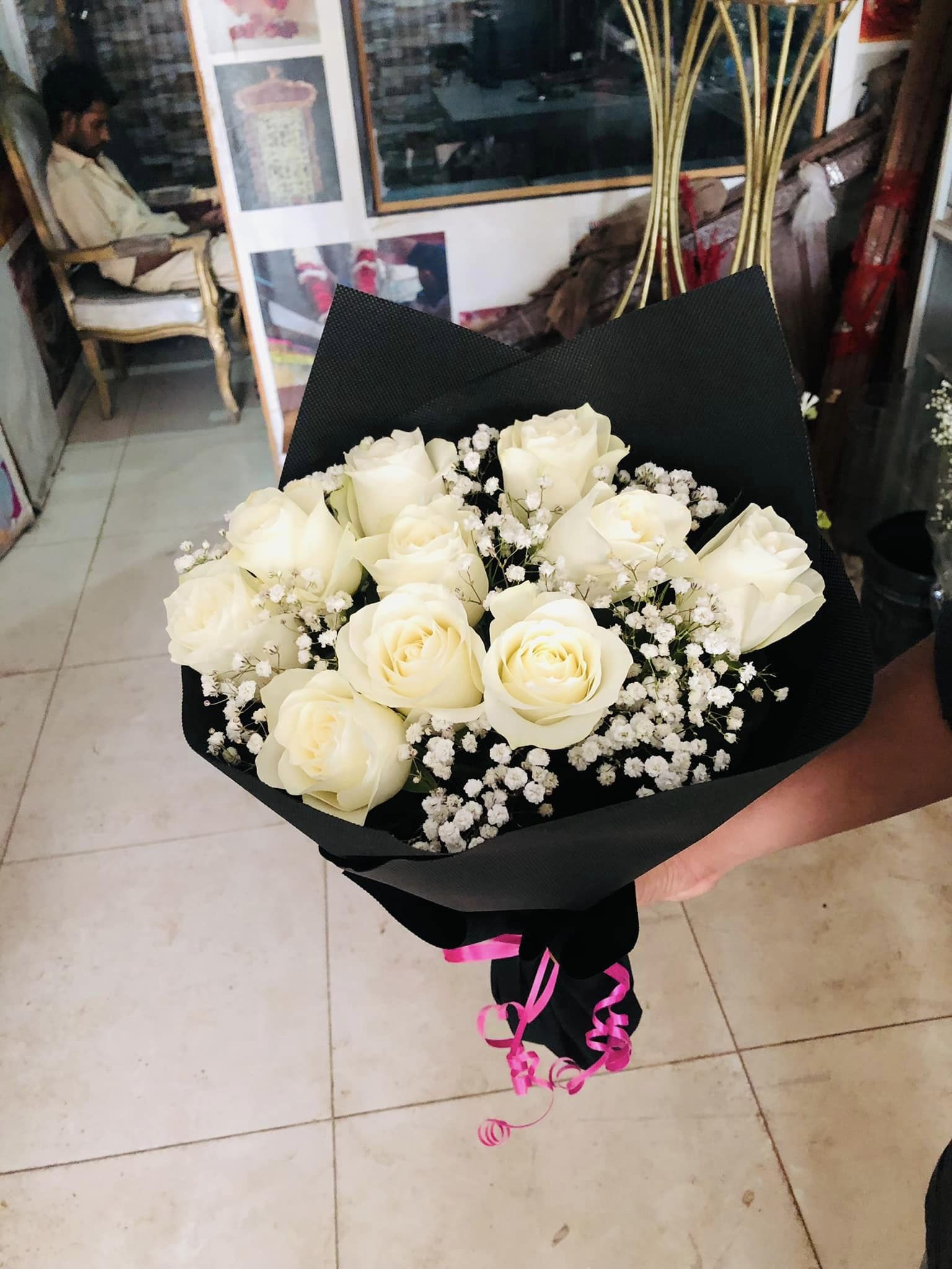The simplicity of white roses combined with the softness of baby’s breath makes this bouquet a symbol of new beginnings, peace, and graceful charm. Whether gifted to a loved one or used as part of a wedding setup, it delivers a lasting impression of elegance and emotion.